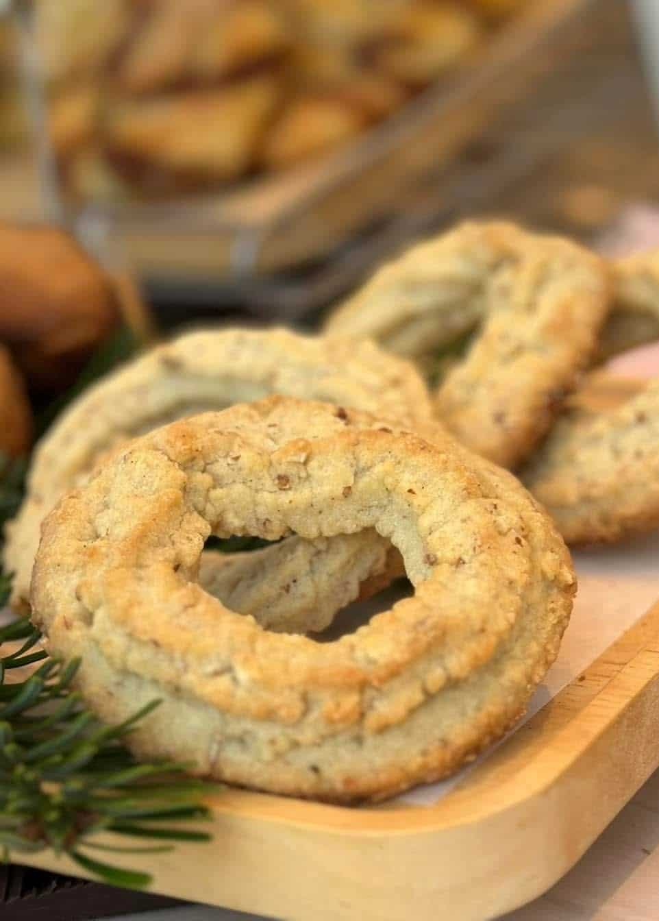 Smørbagte kæmpevaniljekranse med økologisk rørsukker, knuste mandler og ægte bourbonvanilje. Chokoladebrud
